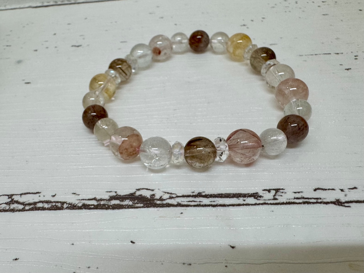 運気アップを狙うなら「オーラライトブレスレット」をぜひお試しください!美しいオーラライトが太陽の光を浴びてきらきらと輝き、あなたの手元を華やかに彩ります⭐︎