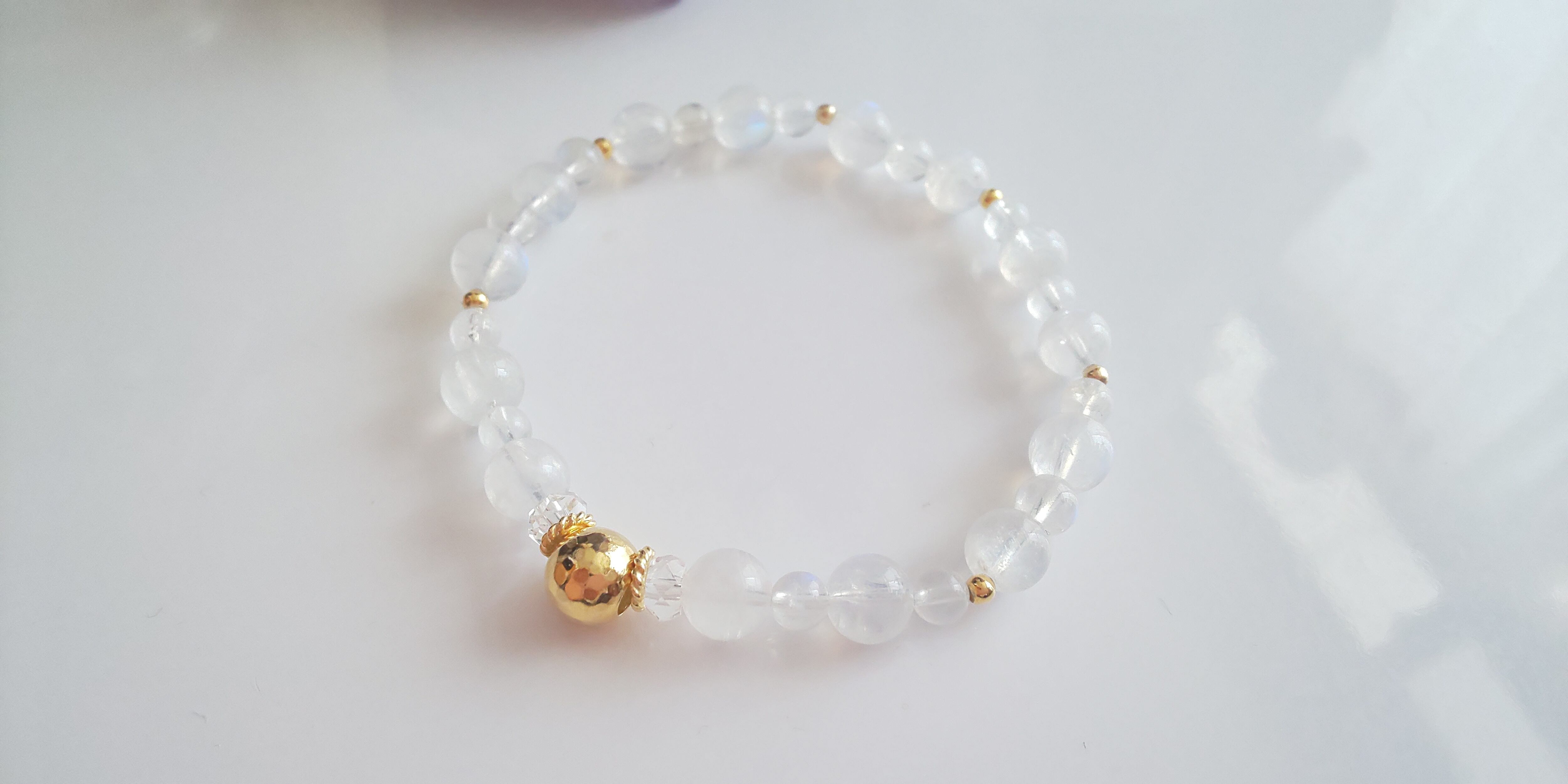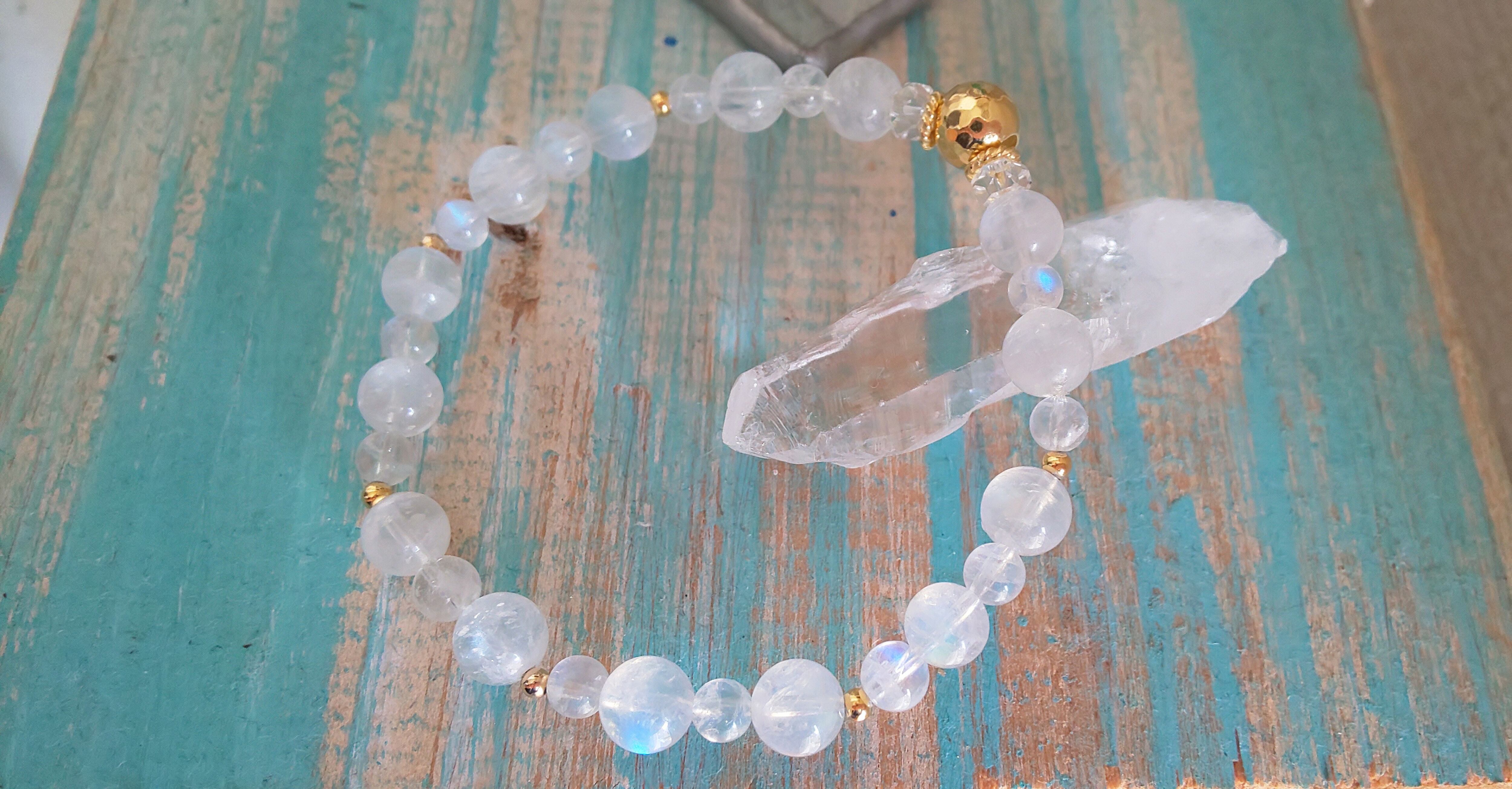 ブルームーンストーンは、月のエネルギーを宿した神秘的な石として古くから人々に癒しをもたらしてきました。月が女性性を象徴することから、女性をサポートする効果に優れているといわれ、女性特有の月の満ち欠けによる不安感を、やわらげてくれるでしょう。