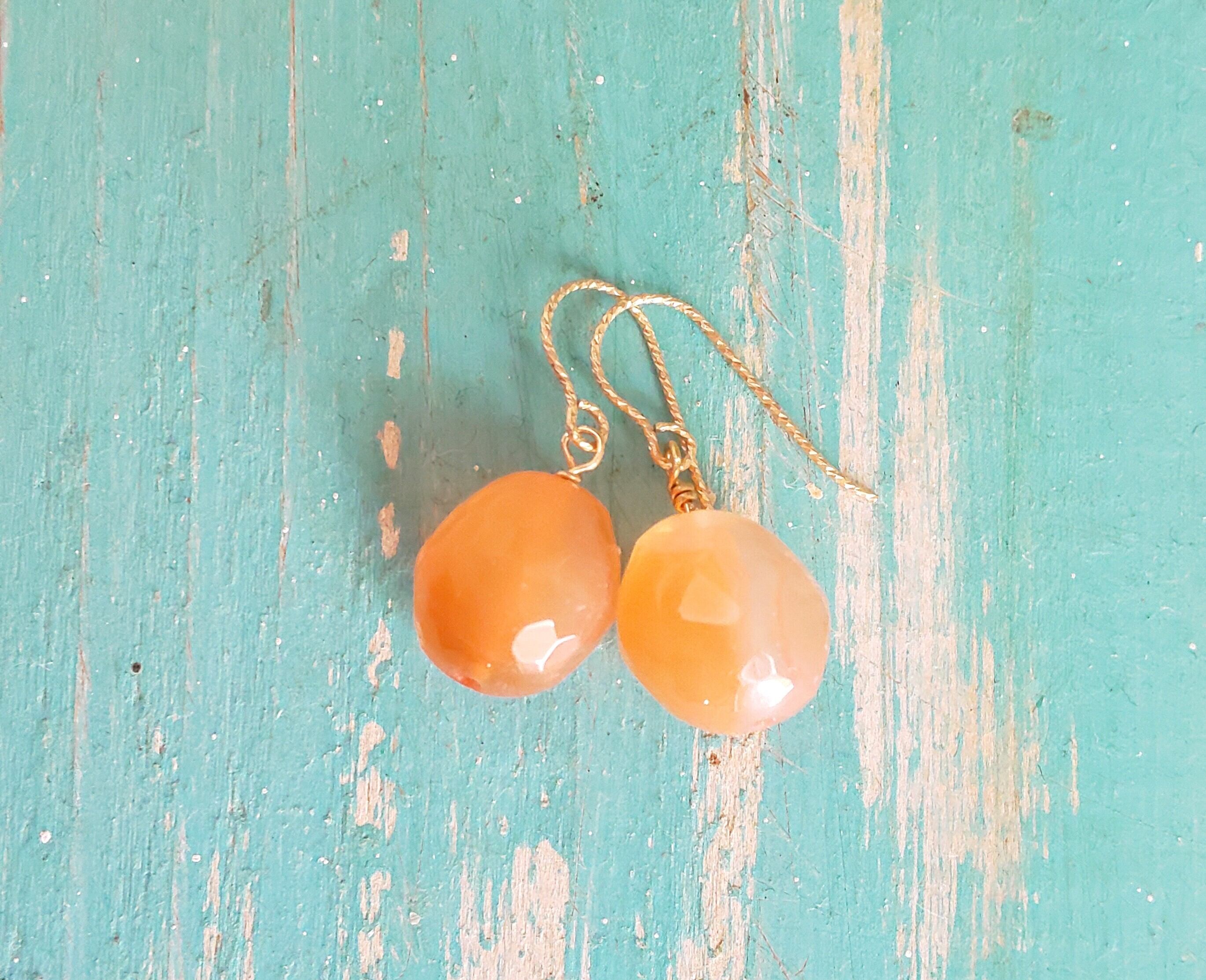 可愛らしいオレンジ色の1粒カーネリアンのピアスです( *´艸`)14kgf