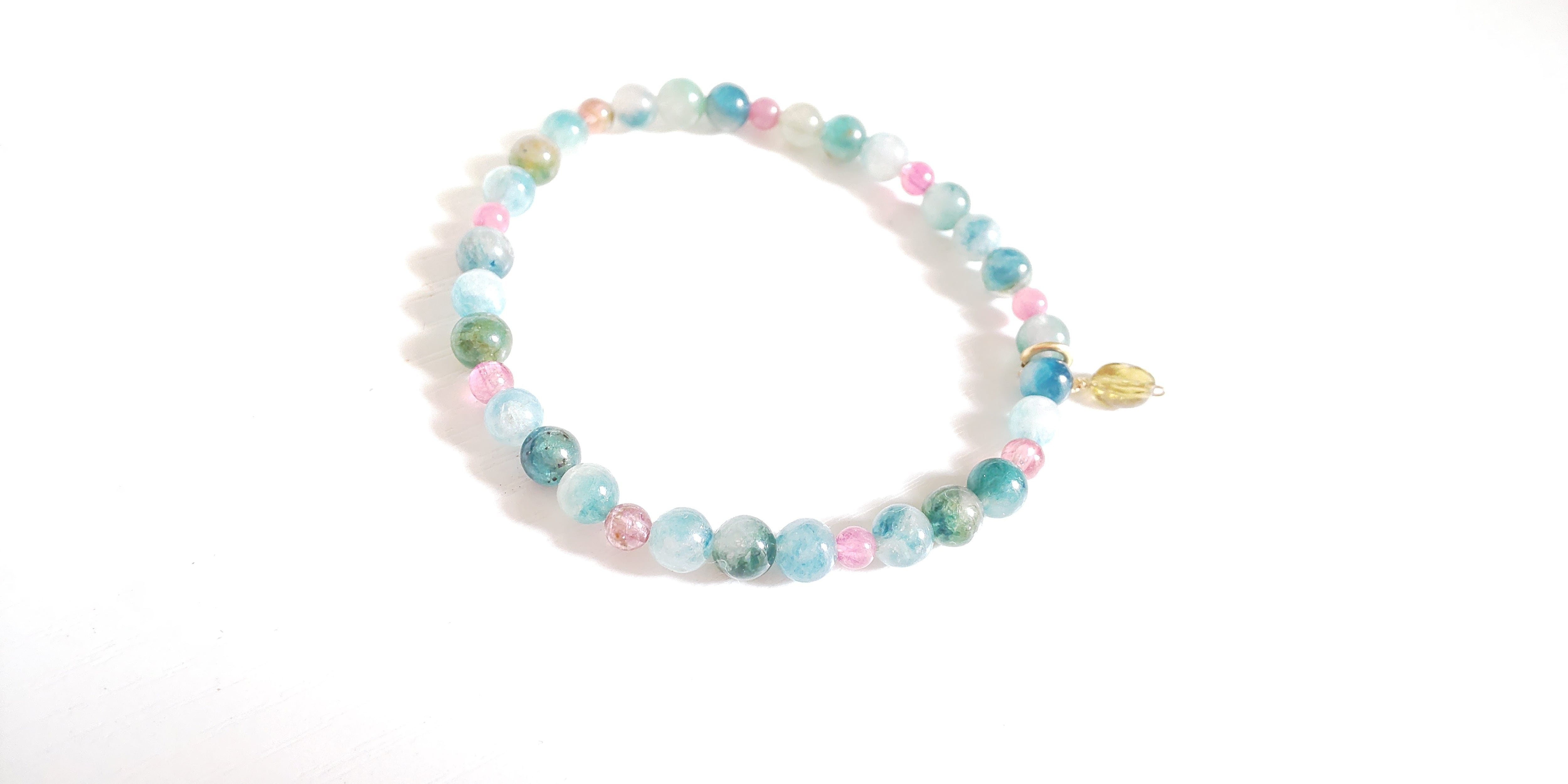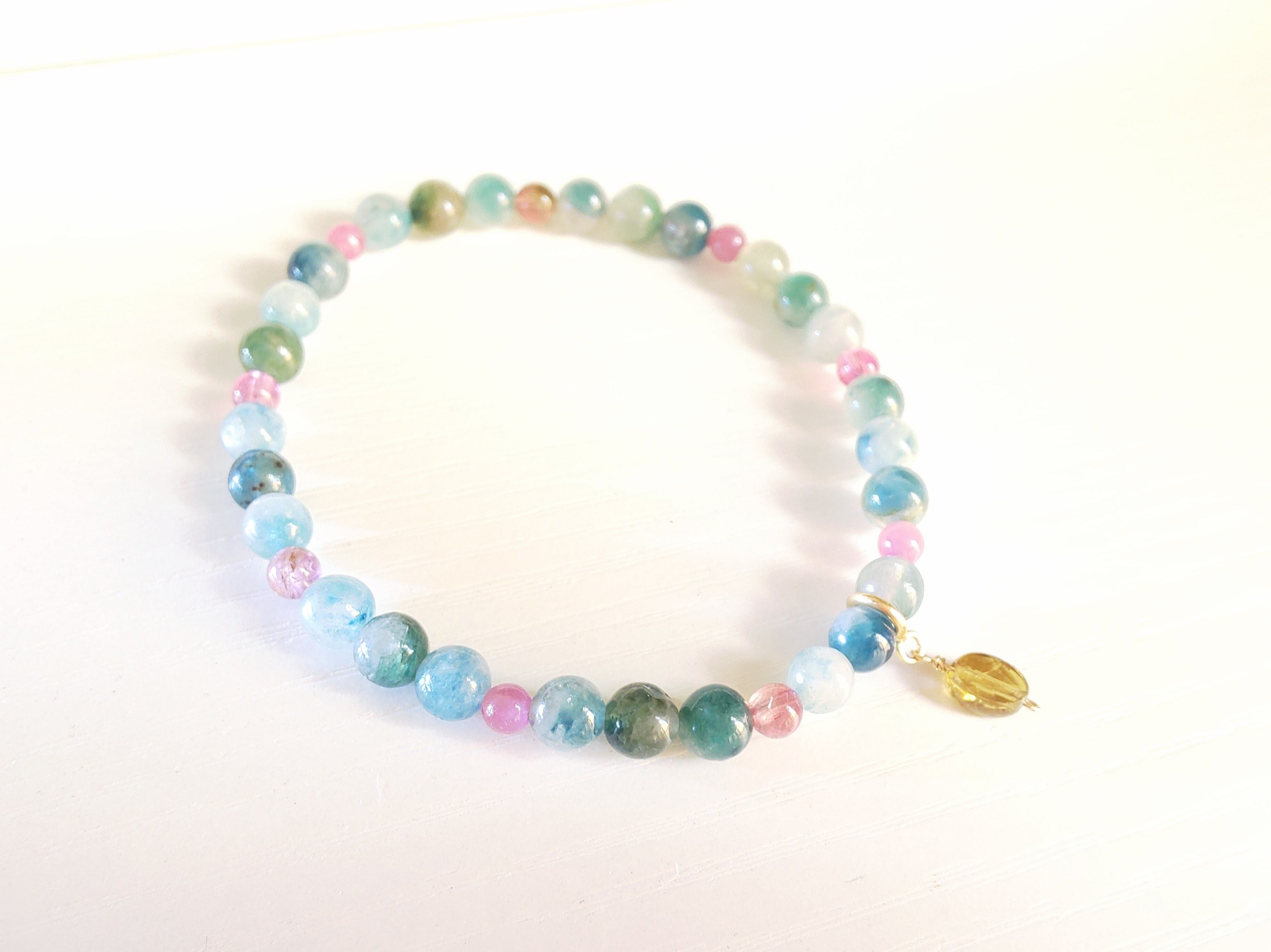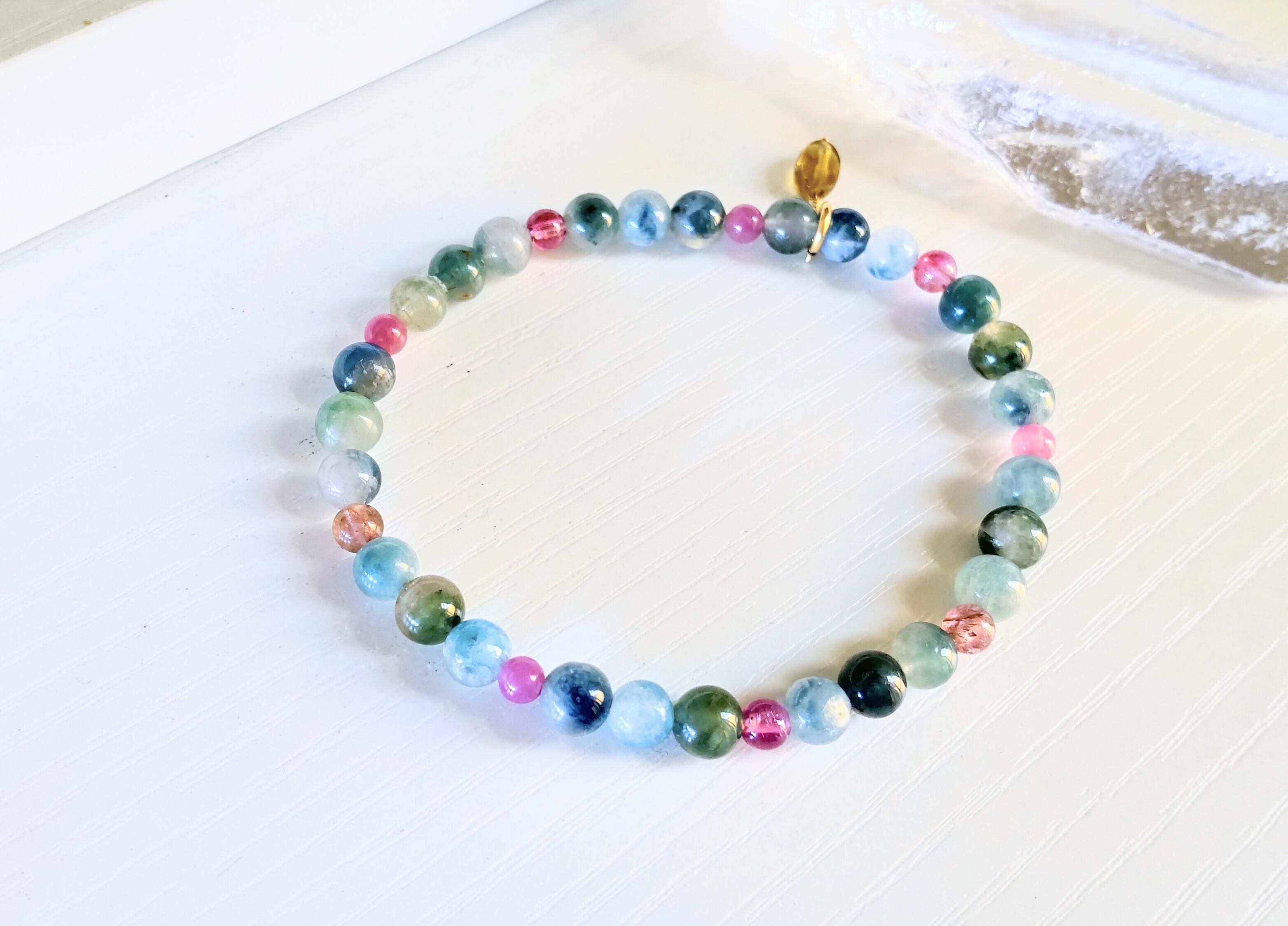 ブルー~グリーンの不思議な色合いをした、インディゴライトトルマリンMIXのブレスレットです☆