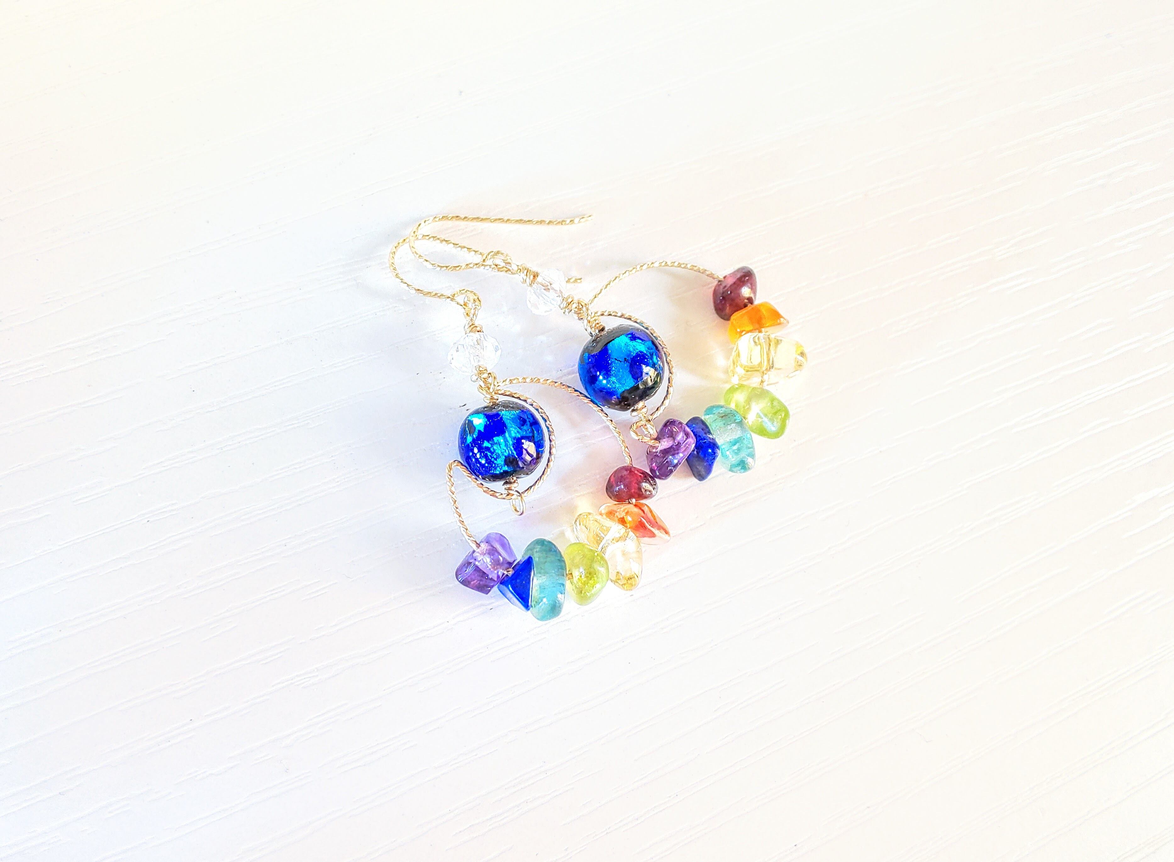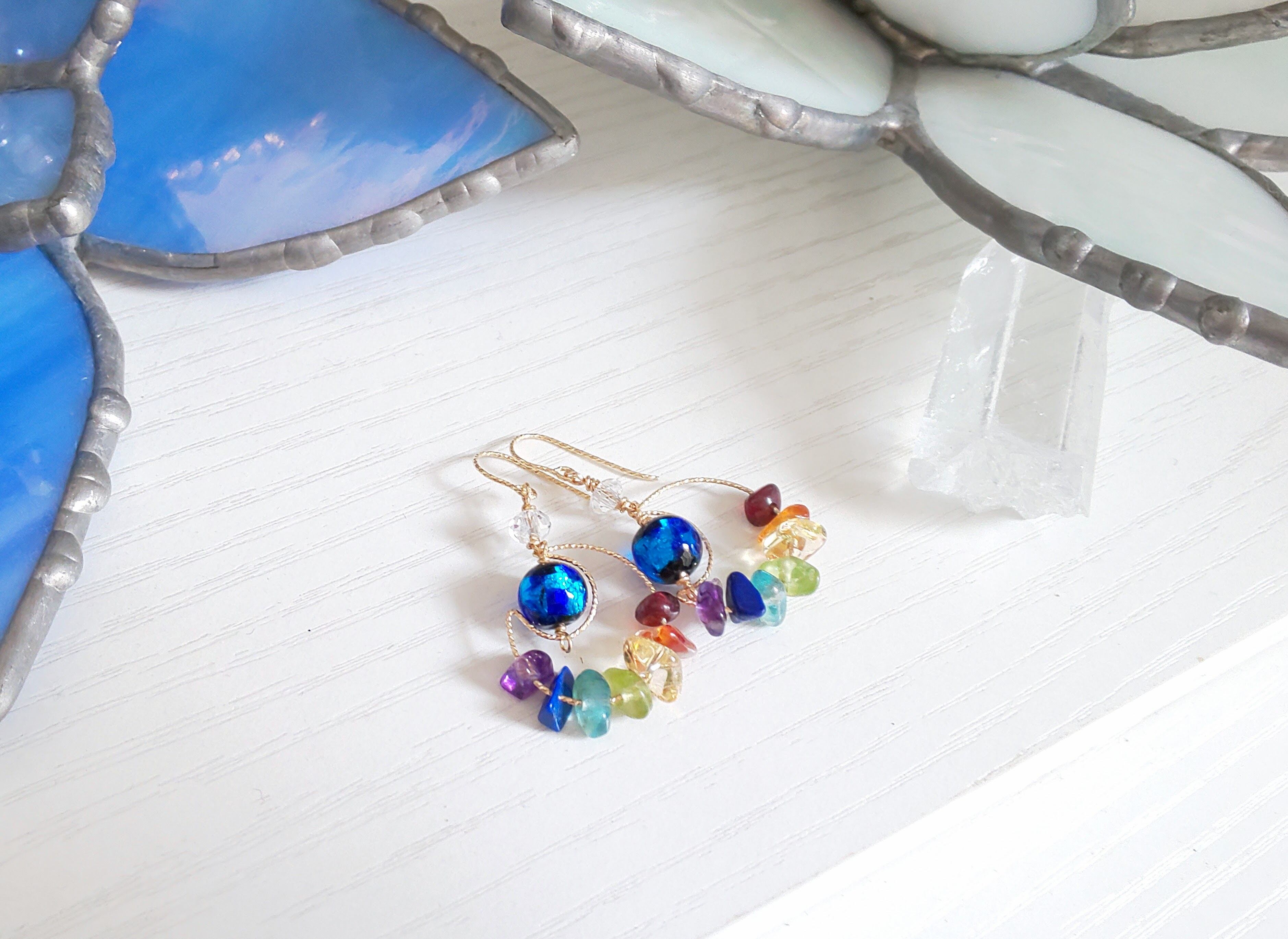 虹は、幸運を呼ぶとも言われ、その7色はオーラや、チャクラとも連動していて、身に付ける事でチャクラやオーラのバランスを整えるとも言われて居ます♪