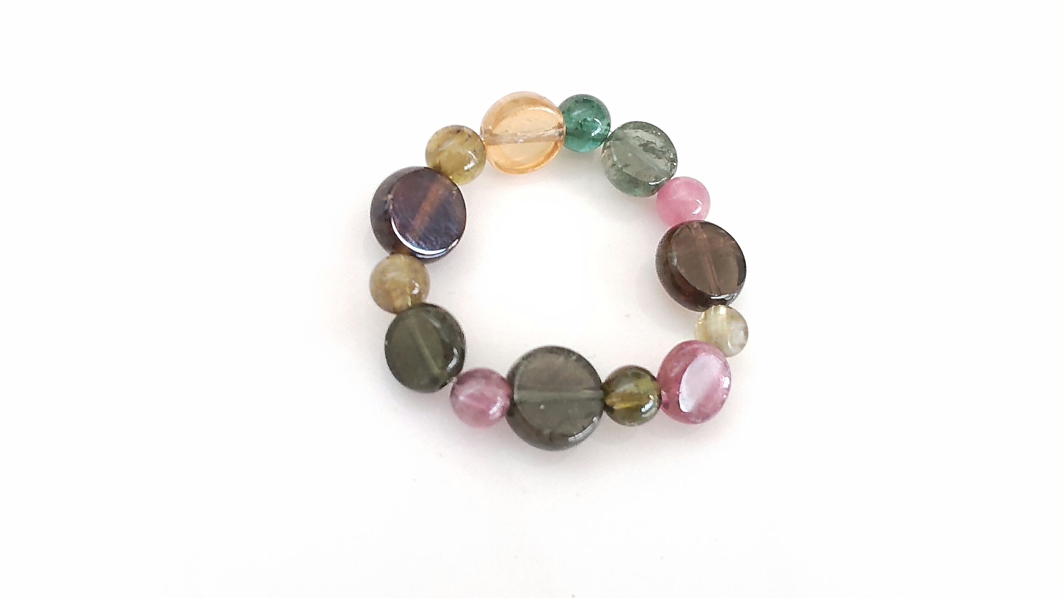 size違いのトルマリンのコインカットを、3mmの丸玉と交互に配置し、ポップでオシャレに仕上げました(^-^)