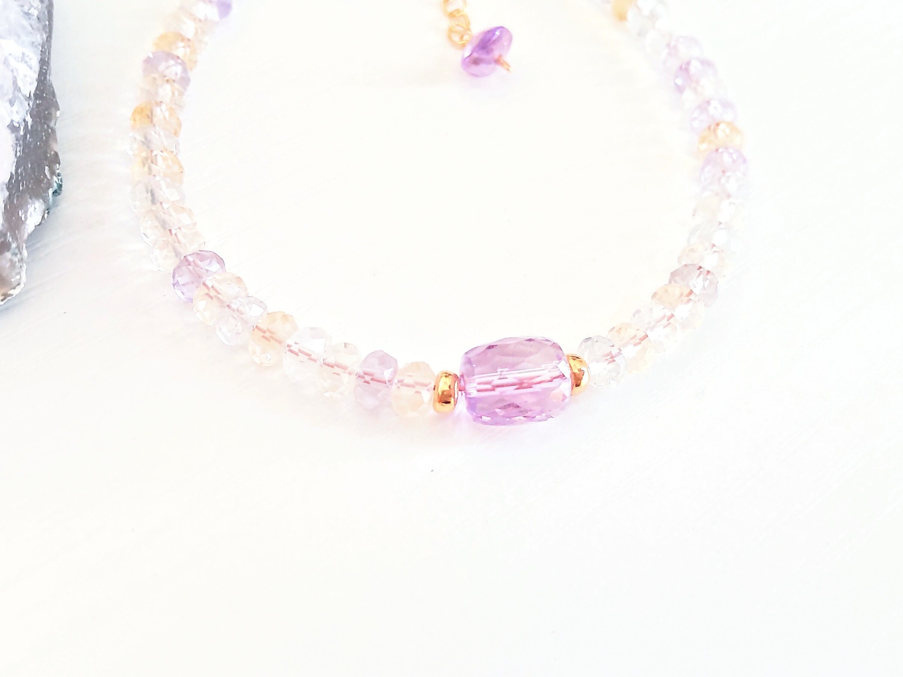 ほんのり淡いMIXカラーに、ピンクアメジストのタンブルが際立ちます♪