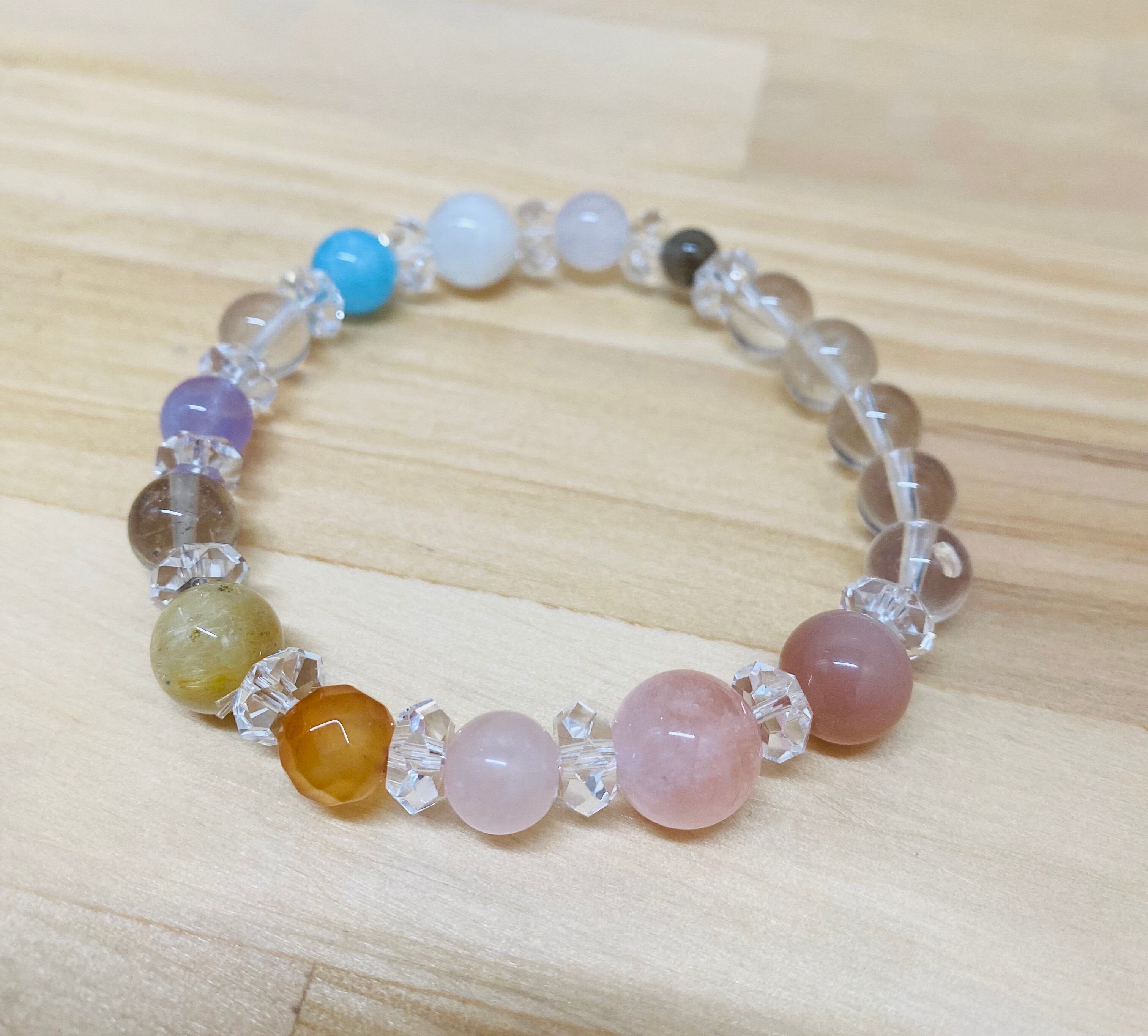 春のオーラが漂うブレスレットが新登場!カラフルでパステルカラーの天然石を贅沢に使用し、腕元を彩ります。石の持つオーラが、あなたの日常を明るく、幸せなものに変えてくれることでしょう。